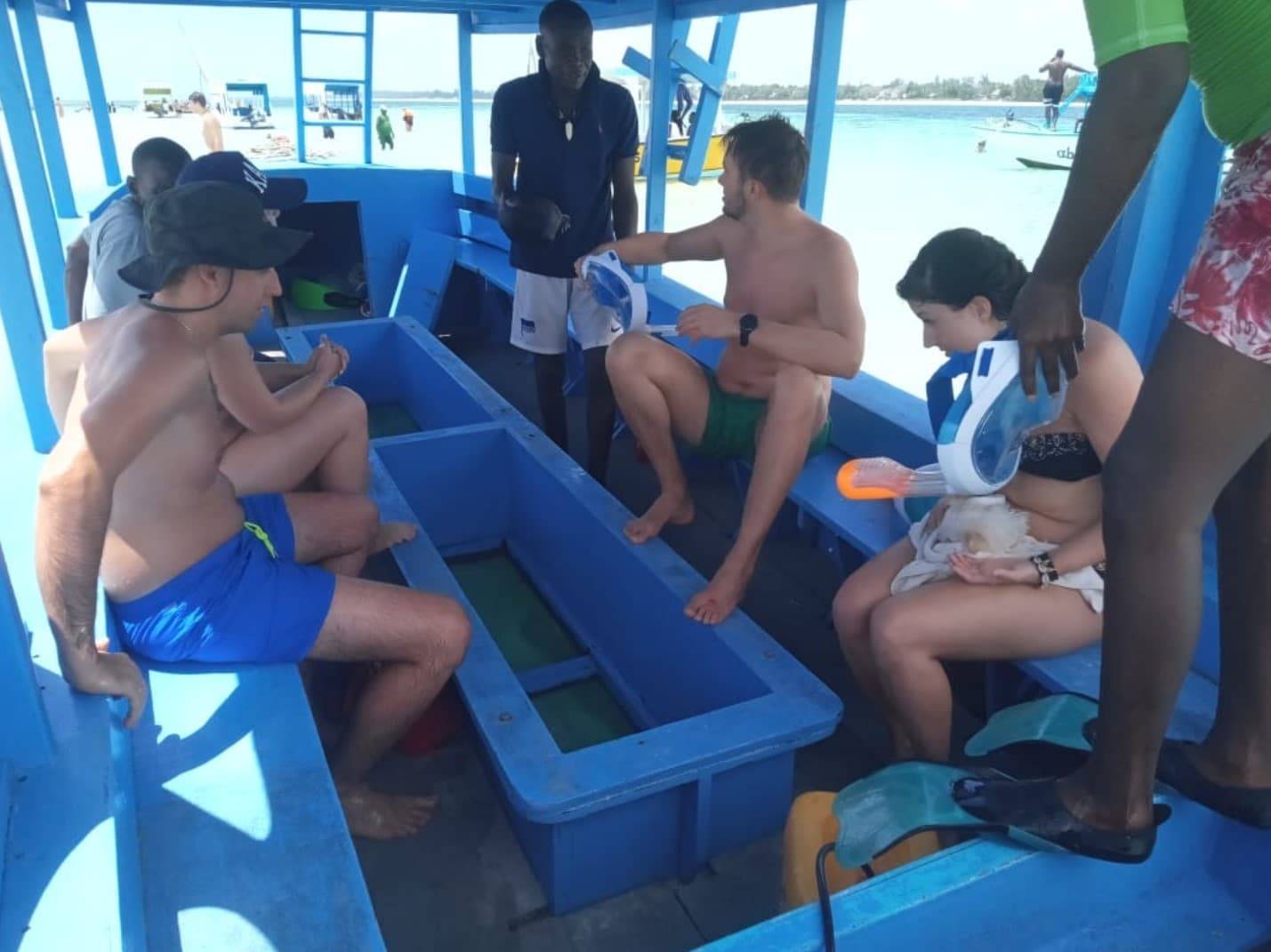 Au départ de la plage de Diani beach, partez à la découverte des fonds marins en quelques minutes de bateau. La côte Kenyane est longée par une magnifique barrière de corail. Nous vous proposons donc de rejoindre un banc de sable qui se découvre à marée basse vous permettant de vous approcher de cette barrière pleine de vie. Vous pourrez ainsi faire du snorkeling, vous baigner ou tout simplement profiter du banc de sable. Grâce au fond vitré du bateau, vous aurez l’opportunité d’observer les fonds pour le plaisir des plus grands comme des plus petits. La sortie dure environ 2 à 3 heures et se fait au départ de la plage de votre hôtel.