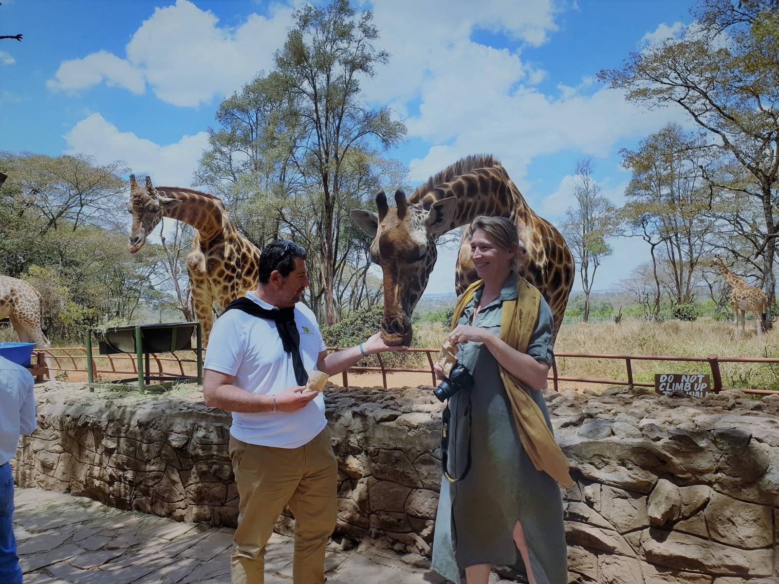 Le centre des Girafes a vu le jour en 1979 quand le petit-fils kenyan d’un écossais, Jock Leslie-Melville et sa femme Betty créent un fond africain pour les espèces sauvages menacées. Ils capturent un girafon pour débuter un programme d’élevage de girafes dans leur propriété. C’est aujourd’hui encore autour de cette propriété que se trouve le centre des girafes. Le but du programme était de réintroduire la présence des girafes dans les parcs nationaux de Ruma et du lac Nakuru, ce qui a été un succès. Alors qu’en 1979, les girafes de Rothschild étaient en voie d’extinction et étaient au nombre de 130, on en compte aujourd’hui 300 grâce à l’élevage.