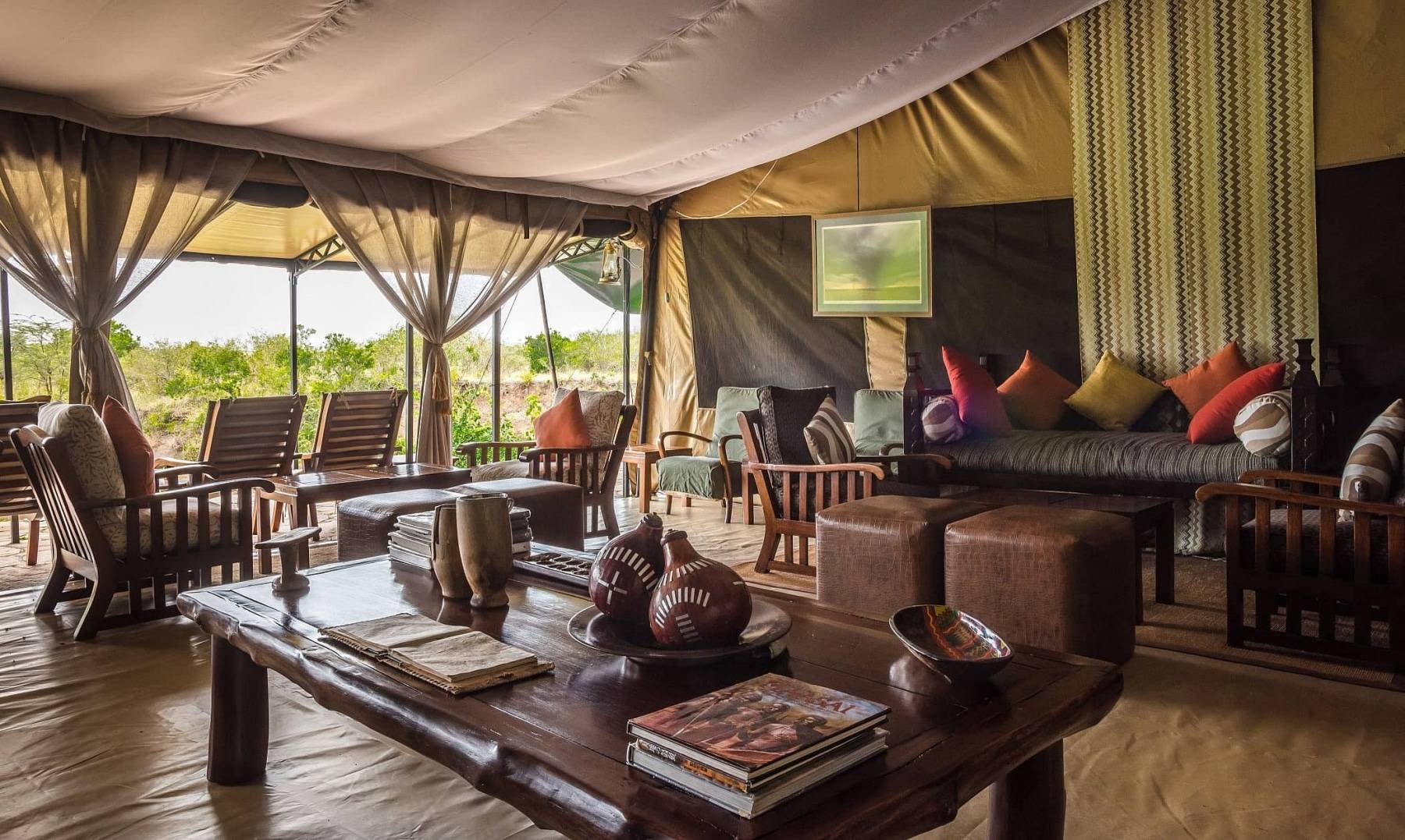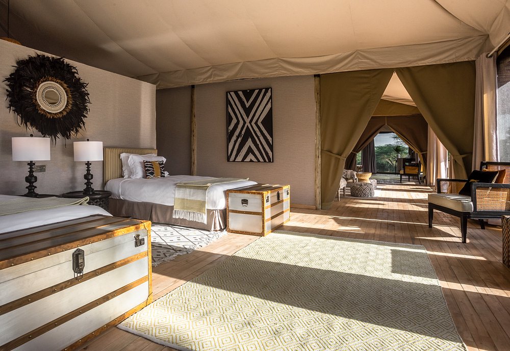 Chaque suite bénéficie d’une intimité totale, nichée dans un bosquet d’arbres avec son propre accès privé. Élevées sur pilotis, elles offrent une vue panoramique sur la rivière Talek et les plaines dorées du Maasai Mara.