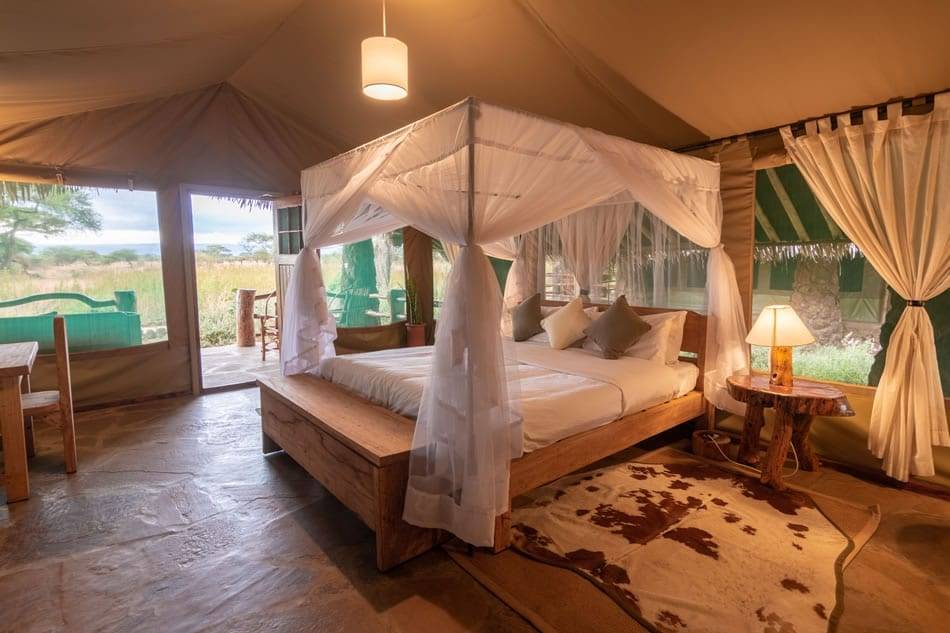 Le campement est composé de 61 tentes équipées de toits de Makutis et d’une terrasse privative. De confort simple, elles sont agréables, disposent toutes d’électricité, d’une salle de bain, de deux petits lits et d’une décoration typiquement africaine. L’eau est chauffée grâce à des panneaux solaires.