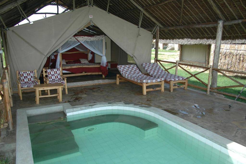 Chaque tente est spacieuse avec salle de bain, douche et toilettes. Les lits sont grands et équipés de moustiquaires Chaque tente dispose de sa piscine privée à l’arrière de la tente dans laquelle vous pourrez vous détendre en toute intimité au retour de votre safari.