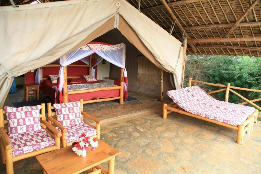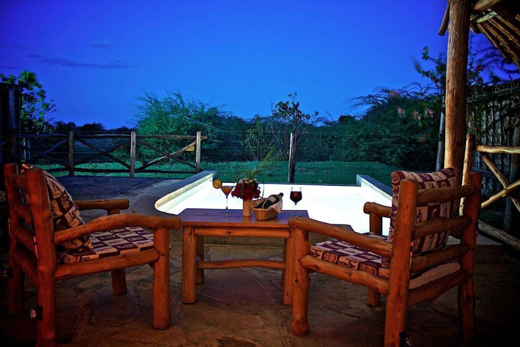Le restaurant du camp surplombe la rivière Voi ou vous pourrez visualiser les animaux qui viennent boire et manger à proximité. La restauration est sous forme de buffet. Niché à l’orée du parc il offre un refuge paisible et tranquille pour échapper à l’abri du tumulte et de l’agitation quotidienne, le rendant parfait pour un séjour romantique, un week-end, une pause spéciale ou un voyage spontané de la ville.