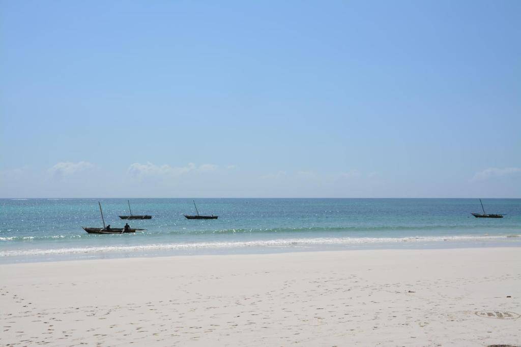 60 chambres sont réparties dans des bungalows d’inspiration swahili aux toits de makuti, chacun réunissant quatre chambres (deux à l’étage et deux au rez-de-chaussée). La chambre est spacieuse, équipée de l’air conditionné, du téléphone, d’un coffre fort, de la télévision et du minibar.